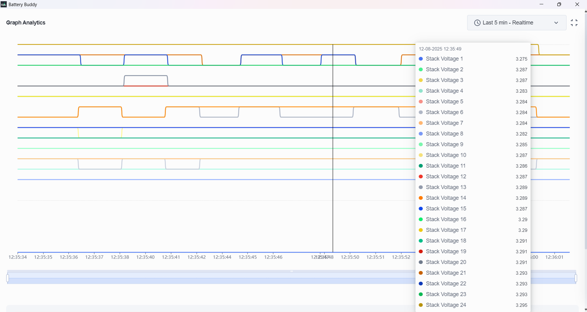The Analytics module in Battery Buddy is designed to help users visualize and analyze the behavior of key battery parameters over time. It enables engineers and service teams to: