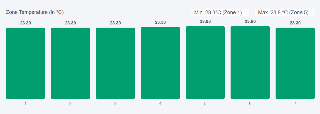 The Zone Temperature widget displays the real-time thermal profile of the battery pack by monitoring temperature across various zones. These readings are collected from NTC (Negative Temperature Coefficient) sensors strategically placed throughout the battery system.