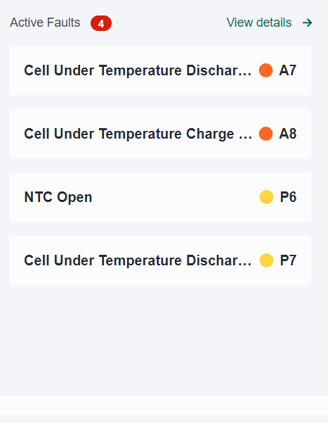 • Fault Name and Fault Code (e.g., Cell Over Voltage – F2)