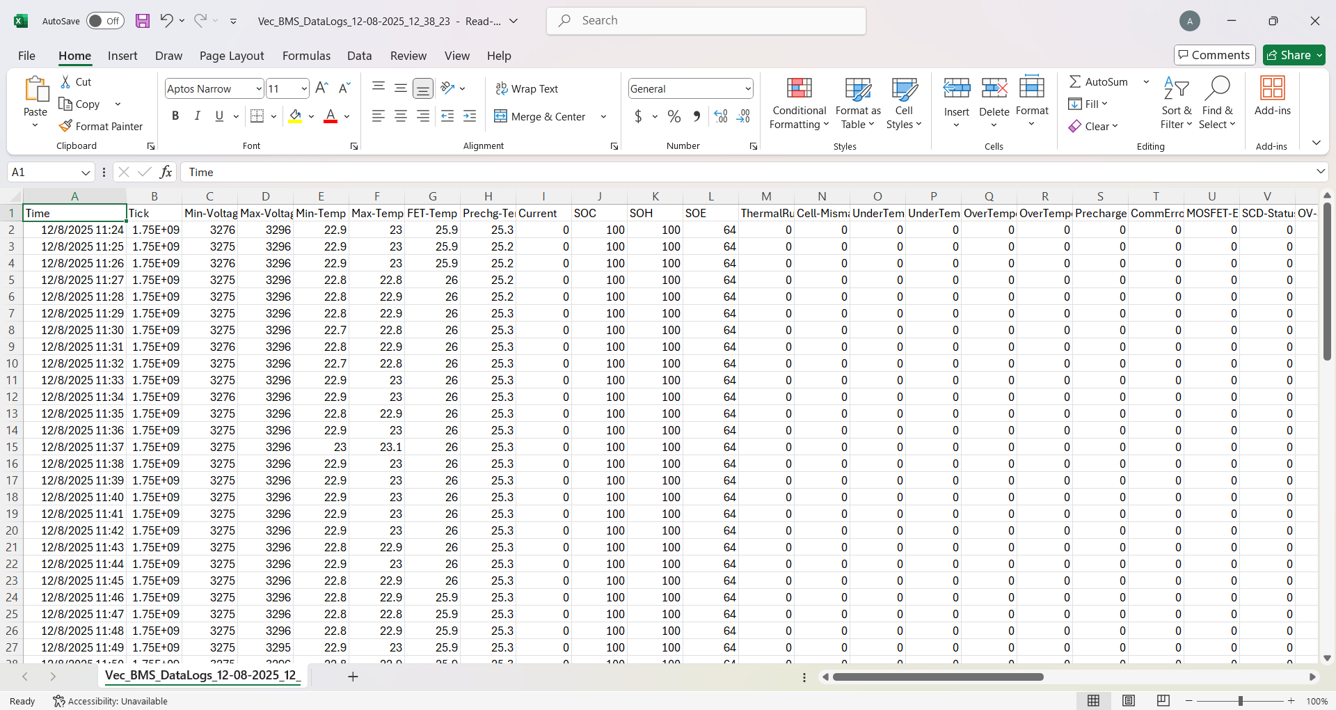 • Folder Icon: Clicking the folder icon opens the directory where historical logs are stored: C:\Program Files\Battery Buddy Tool\resources\app\dist\main\logs\BBT_Data\Historical_data_logs