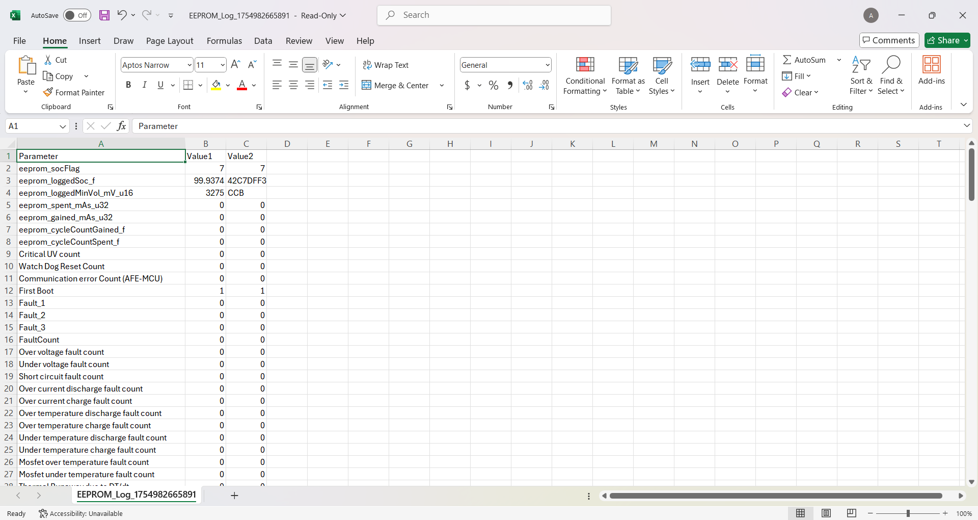 • Folder Icon: Clicking the folder icon opens the directory where historical logs are stored: C:\Program Files\Battery Buddy Tool\resources\app\dist\main\logs\BBT_Data\ Internal_data_logs