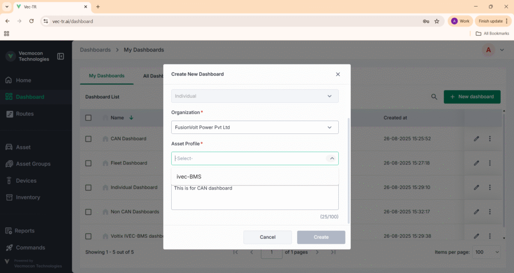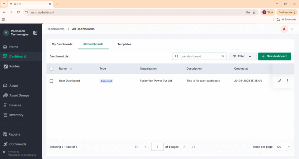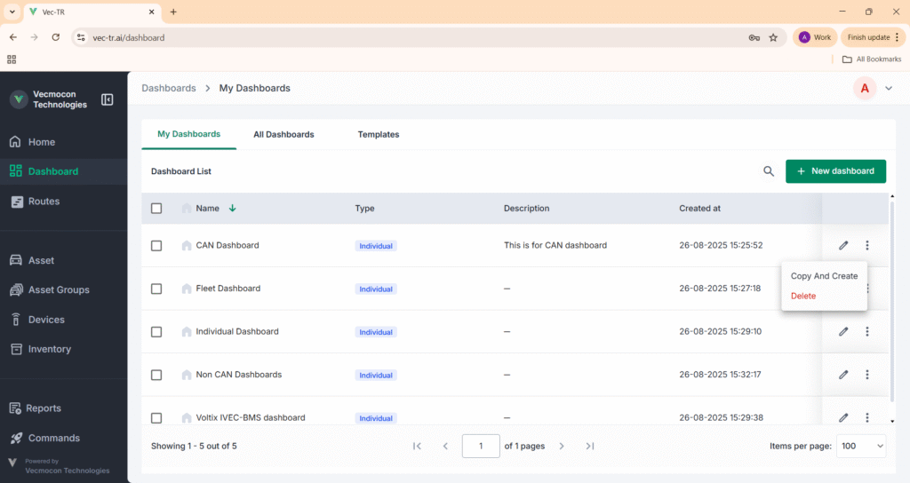 You can create a new dashboard in Vec-TR by copying an existing one and editing its details.