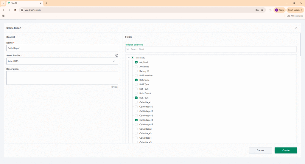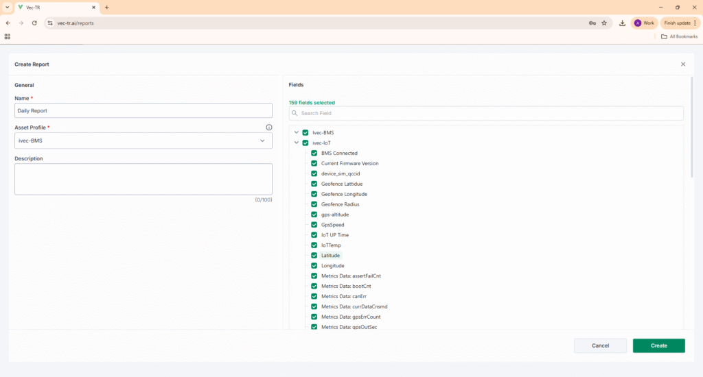 - You can select a few specific fields (e.g., BMS State, Latitude, Longitude) or choose all available fields.
