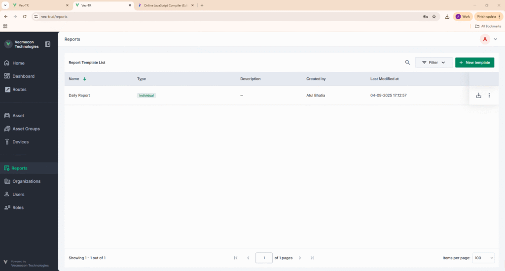 Navigate to the Reports tab from the left-side menu. Here, you will see the Report Template List. If no reports exist, the list will be empty.