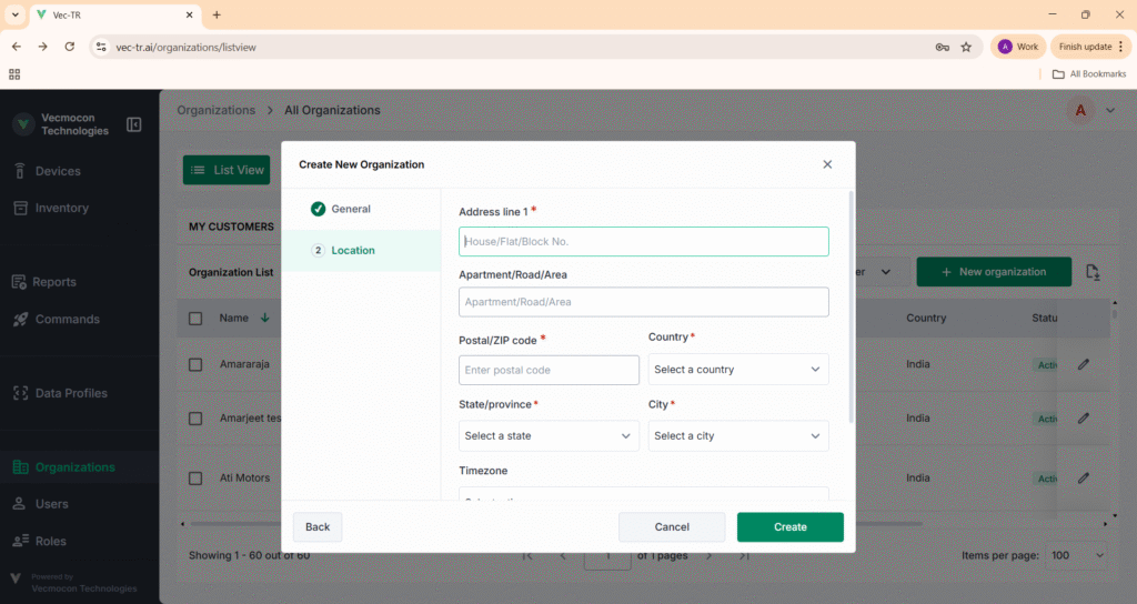 Follow the steps below to create a sub-organization in Vec-Tr: