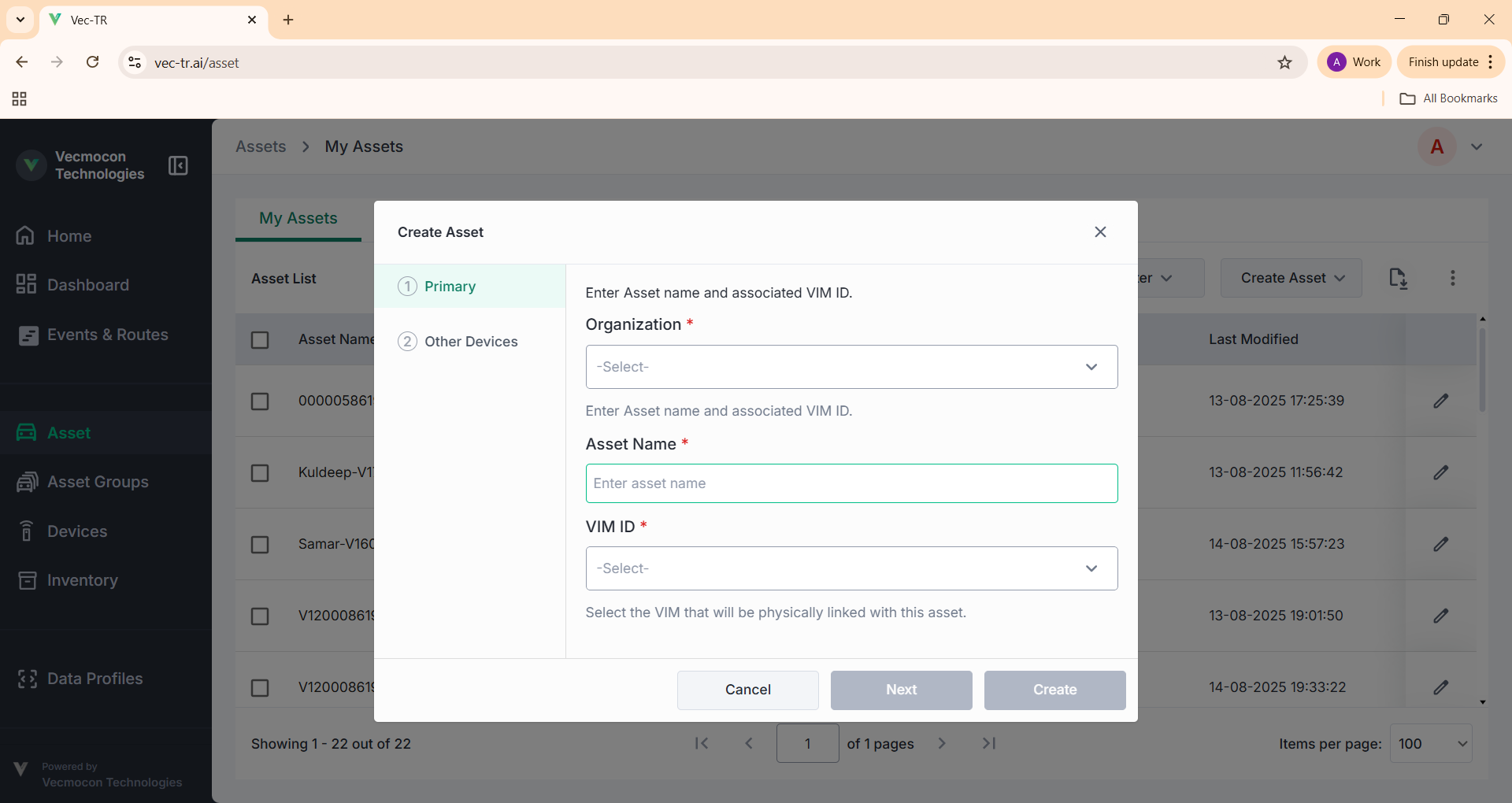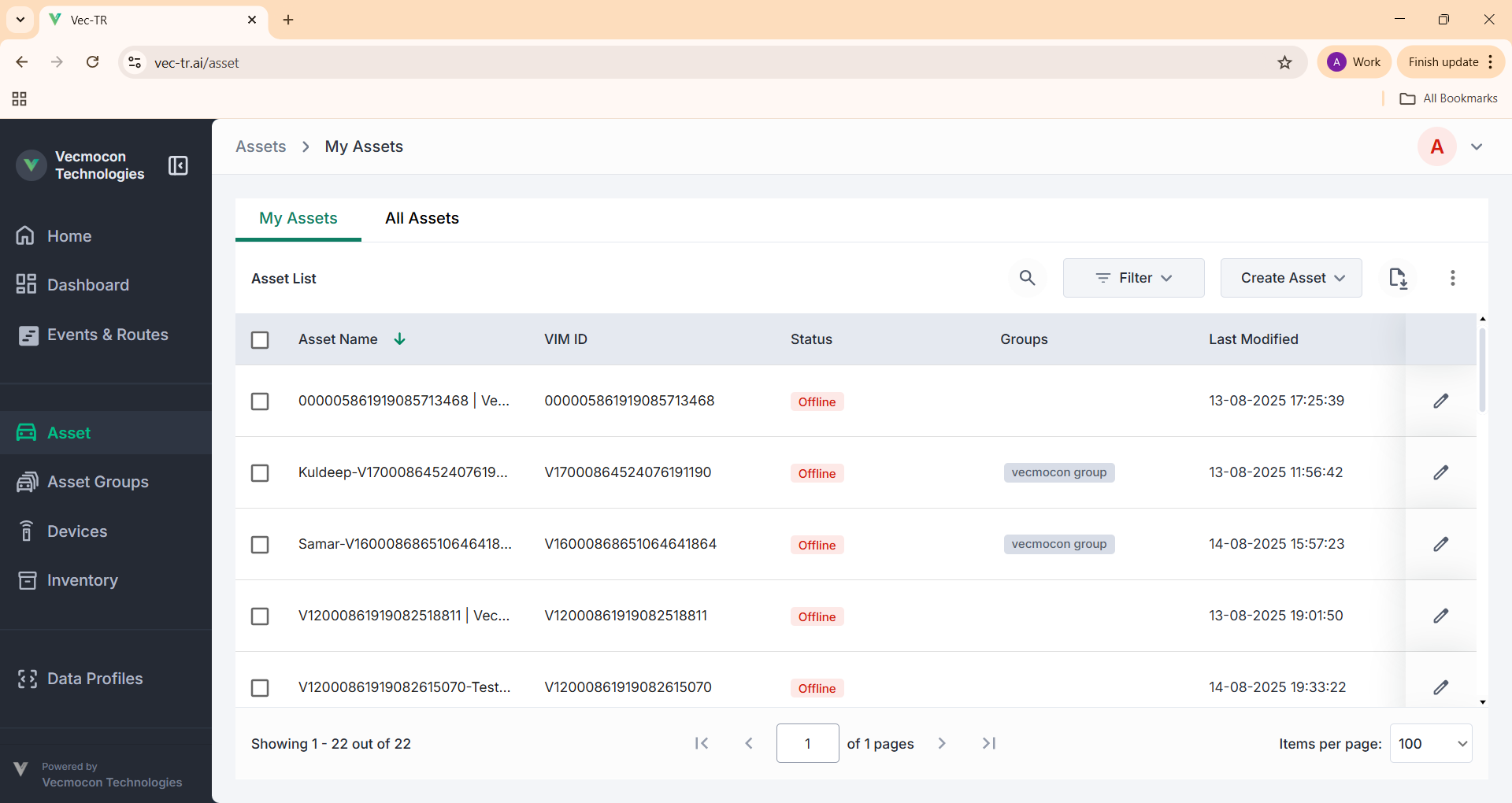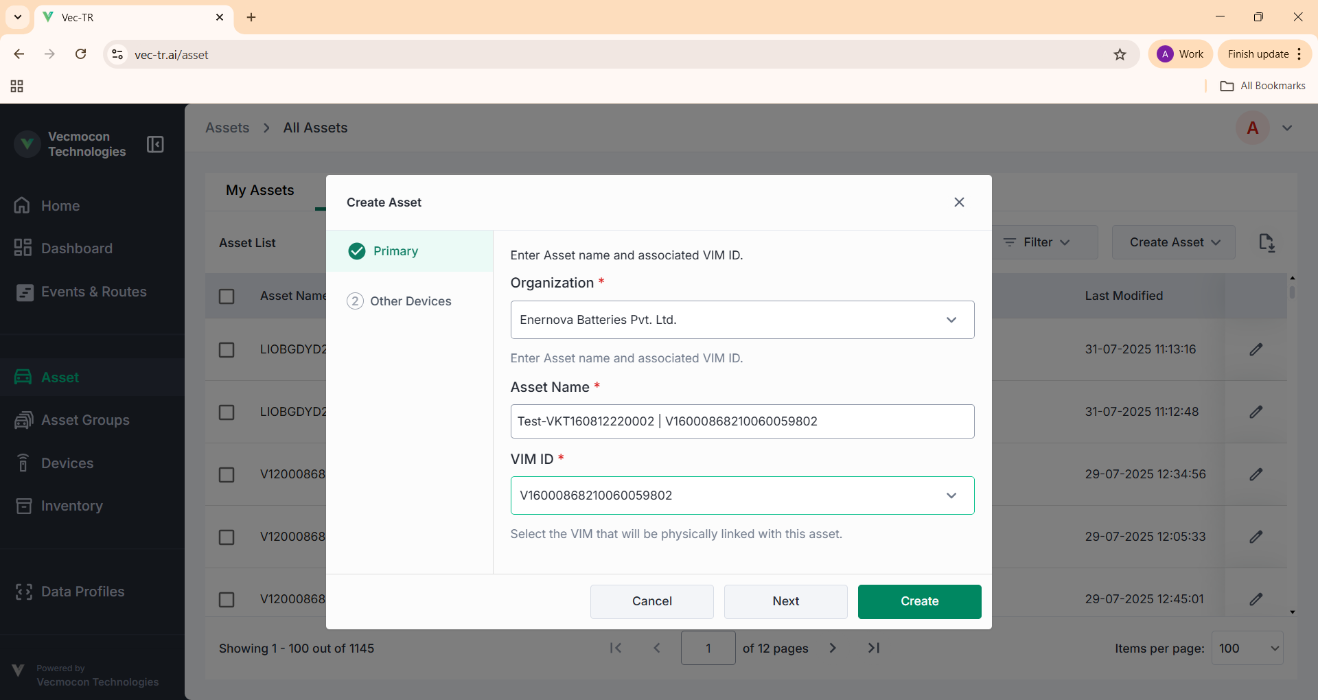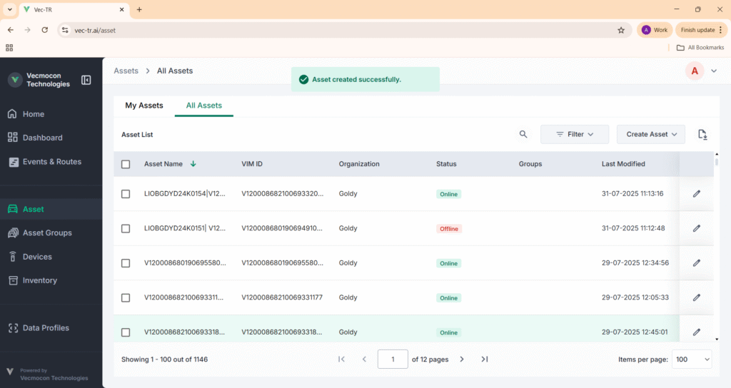 Now your single asset has been successfully created in the Vec-TR Dashboard.