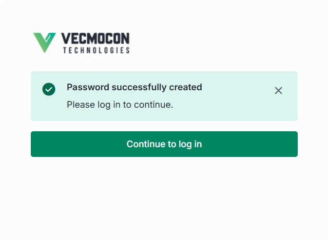 - Once the password is created successfully, you will see a confirmation message: “Password successfully created”.